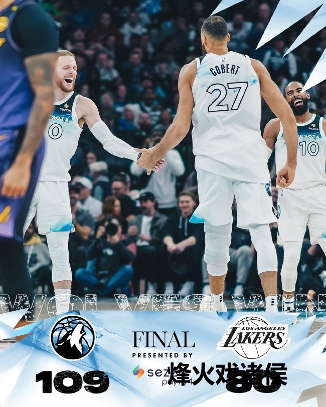 北京时辰12月3日,NBA老例赛,丛林狼109-80大捷湖东说念主,湖东说念主近7战5负再次跌回西部第八。